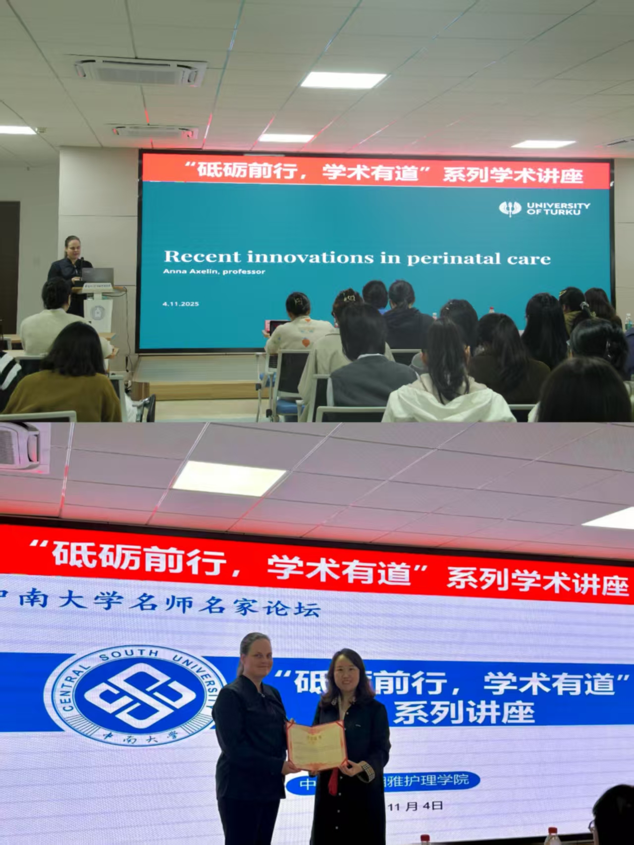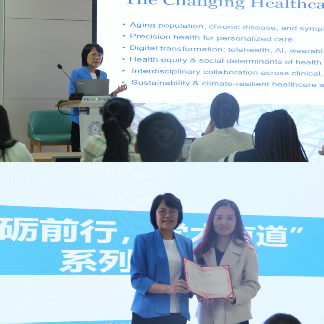 2025年11月4日中午,“砥砺前行,学术有道”系列学术讲座第151期在湘雅护理学院416学术报告厅顺利举行。此次讲座特邀美国耶鲁大学护理学院Beatrice Renfield讲席教授、国际知名护理科学家与转化健康研究专家丛笑梅教授以“From Bench to Bedside to the Community: Interdisciplinary and Bio behavioral Research”为题做主题讲座。湘雅护理学院院长王红红教授、副院长李现红教授、副院长郭佳教授,以及包括留学生在内的100余...