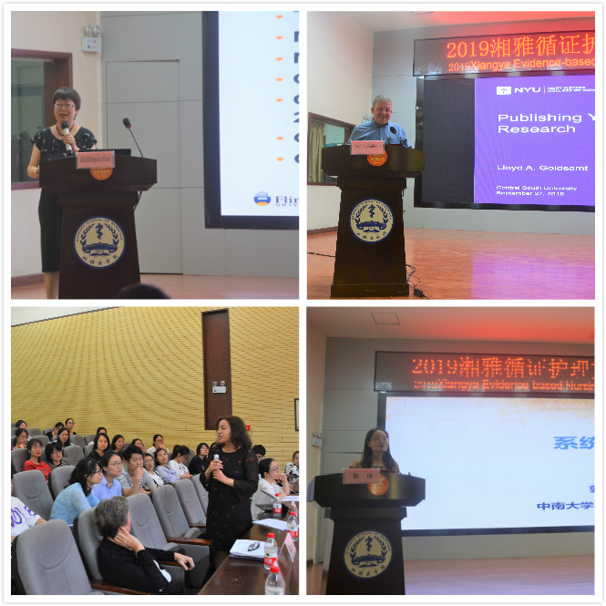 9月25日上午8时30分,“2019湘雅循证护理方法与实践工作坊”在中南大学湘雅新校区图书馆报告厅顺利开班。中南大学湘雅护理学院院长唐四元教授、副院长李现红教授、副院长李乐之教授、曾慧教授、杨敏教授等,澳大利亚弗林德斯大学副校长兼护理与健康科学学院执行院长Alison Lydia Kitson教授、Lily Dongxia Xiao教授,澳大利亚弗林德斯大学医学与公共卫生学院Leila Mohammadi博士,美国麻省总医院健康职业学校校长Paula Milone-Nuzzo教授,香港理工大学护理学院副院长、中南大学客座教授Maritta Anneli Valimaki教授等出席了开幕式。开幕式由中南大学湘雅护理学院副院长李现红主持。院长唐四元致辞,他代表学院全体师生对海外嘉宾的到来表示热烈欢迎。唐四元向与会人员介绍了近年来中南大学护理学科发展取得的成效,以及湘雅护理学院快速的国际化进程。唐四元指出循证护理在护理实践中起着重要作用,希望参加培训的研究生不忘初心,牢记使命,珍惜机会,努力学习,大胆探索,用于实践,多产出高水平科研成果。最后,唐四元与与会人员分享了中南大学湘雅护理学院即将成立JBI循证护理国际合作中心的喜讯。