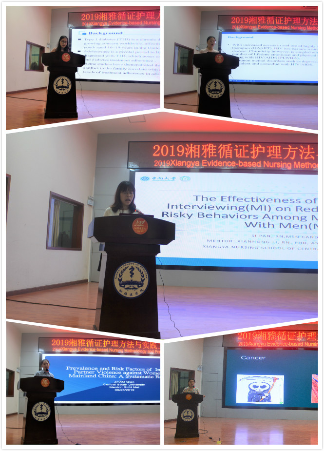 本次工作坊内容丰富,形式多样,不仅包括国内外专家的主题授课,还包括实战课以及学生相关课题分享汇报。澳大利亚弗林德斯大学副校长兼护理与健康科学学院执行院长Alison Lydia Kitson教授、美国麻省总医院健康职业学校校长Paula Milone-Nuzzo教授、香港理工大学护理学院副院长Maritta Anneli Valimaki教授、美国纽约大学Rory Meyers护理学院全球事务办主任Ann B.Williams教授、澳大利亚弗林德斯大学护理与健康学院教授Lily Dongxia Xiao教授、美国纽约大学Rory Meyers护理学院高级研究员Lloyd A. Goldsamt、弗林德斯大学医学与公共卫生学院医学教育Leila Mohammadi博士,分别以“研究的实践转化”、“知识转化”、“基于证据的研究PICO术语”、“将证据转化为实践”、“Meta合成”、“如何撰写 Meta分析和系统评价”、“文献检索的系统方法”及“证据评价”为题,进行了精彩授课。中南大学湘雅护理学院郭佳副教授在3名研究生助教的协同配合下开展了Meta分析与系统评价室战课。5位研究生就自己目前的循证护理课题进行了汇报,专家现场对其进行了点评与指导。