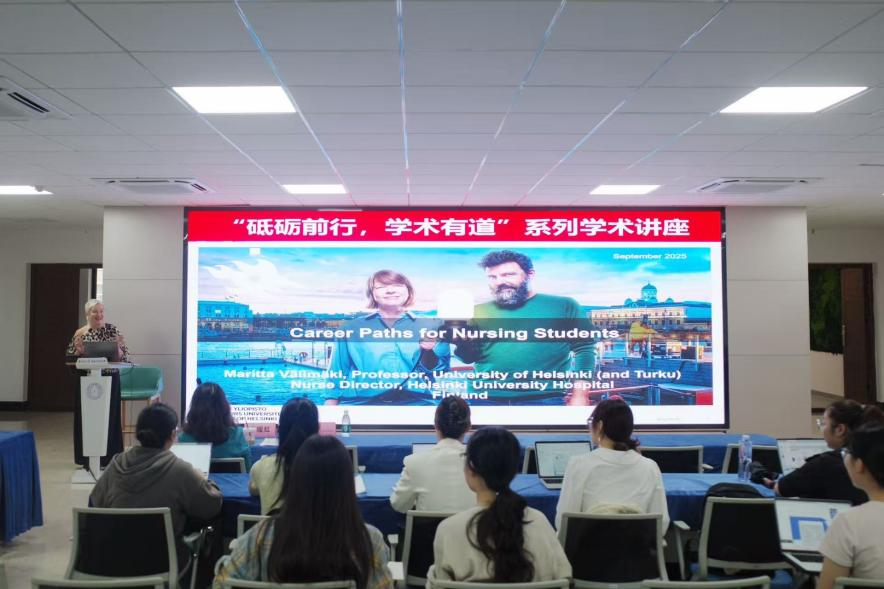 2025年9月22日上午,“砥砺前行,学术有道”系列学术讲座第148期在湘雅护理学院416学术报告厅顺利举行。此次讲座特邀赫尔辛基大学护理学终身教授、赫尔辛基大学医院护理部主任Maritta Välimäki教授以“Career Paths for Nursing Students”为题做主题讲座,吸引了包括留学生在内的100余名护理专业学生参加。湘雅护理学院副院长李现红教授主持讲座。